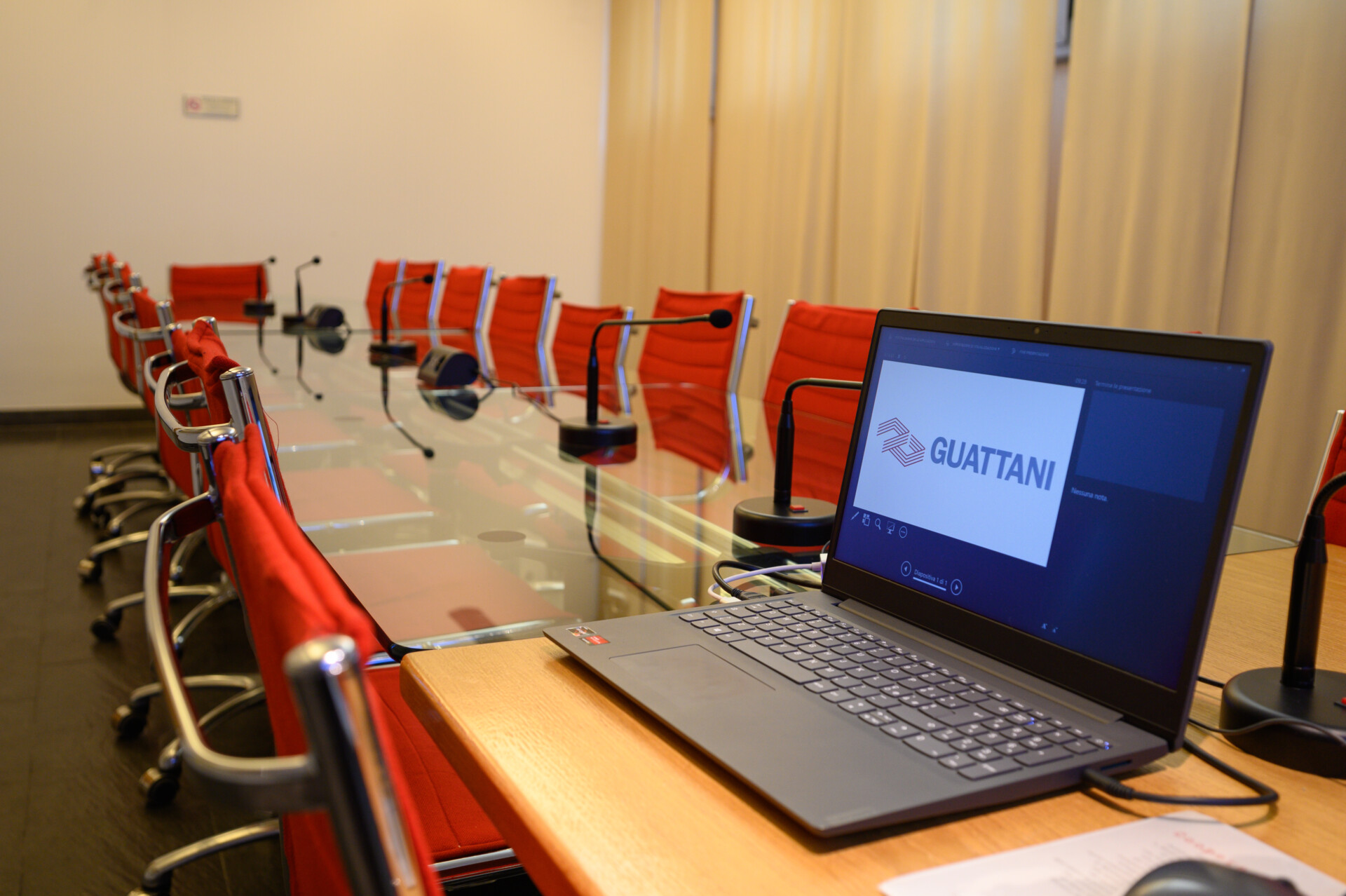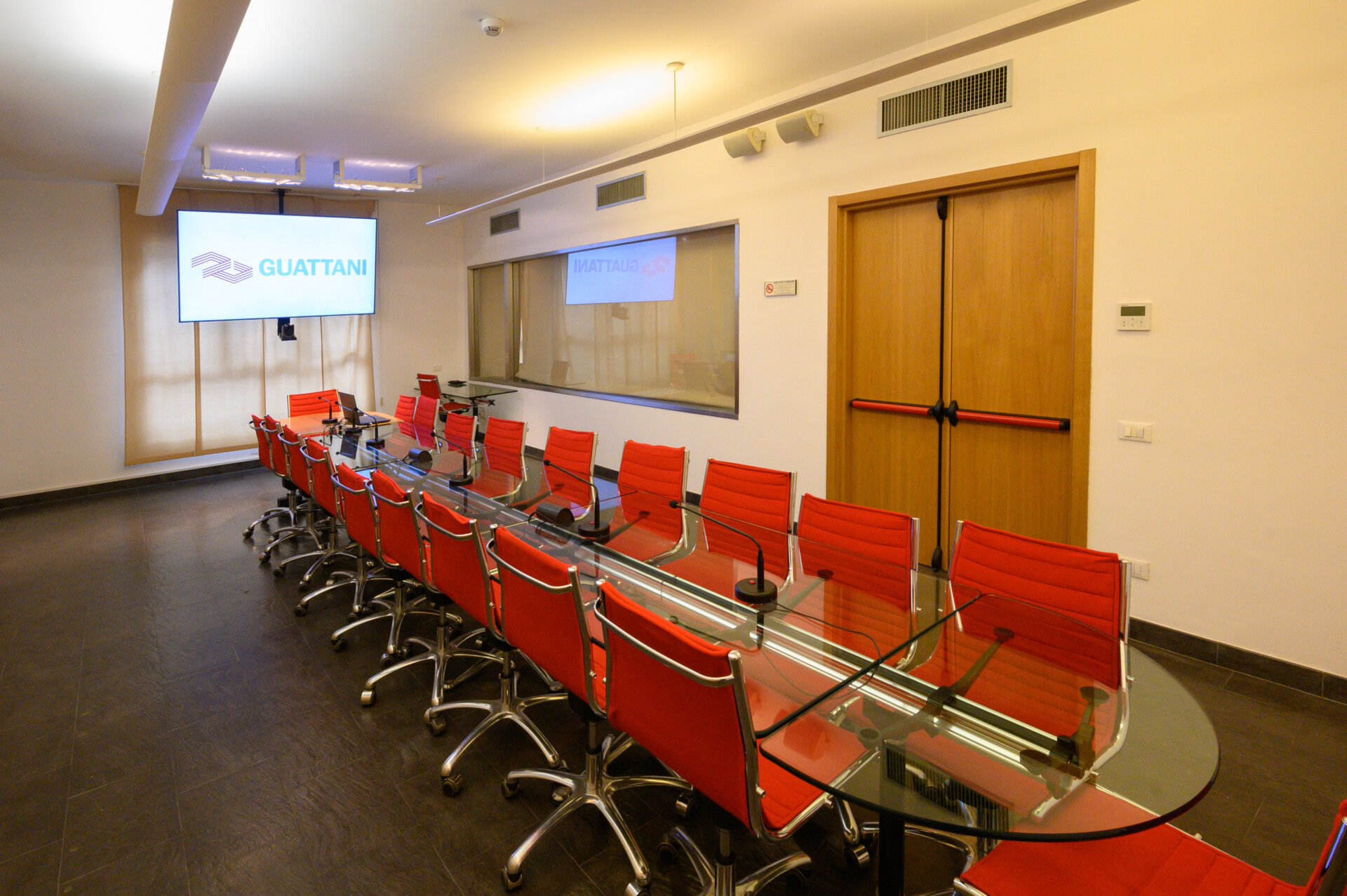 Dotata di un tavolo ovale e circa 22 sedute fornisce un ambiente accogliente e tecnologicamente attrezzato per massimizzare la produttività. La disposizione degli spazi e l’acustica ottimizzata garantiscono che ogni voce possa essere ascoltata chiaramente, mentre l’illuminazione calibrata crea un’atmosfera accogliente che invita al dialogo ed alla condivisione delle idee.
